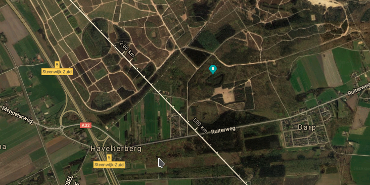 De app toont niet alleen een rechte lijn naar het eindpunt, maar toont ook de track van de gelopen route. Het militair oefenterrein is openbaar toegankelijk en hier kun je vrij struinen. Daarbuiten is het soms handiger om niet dwars door een dennenbos te gaan en boerenweiland te vermijden.
